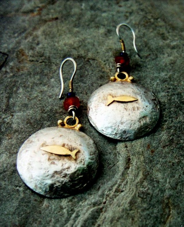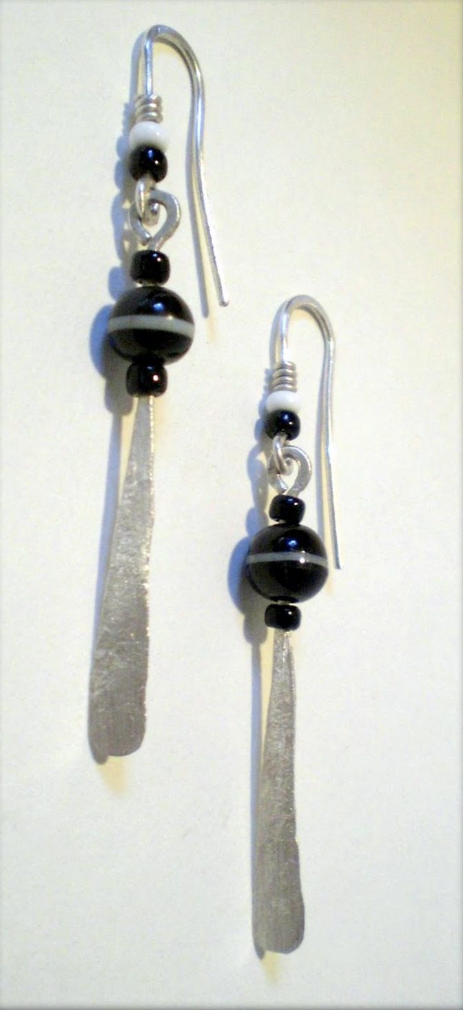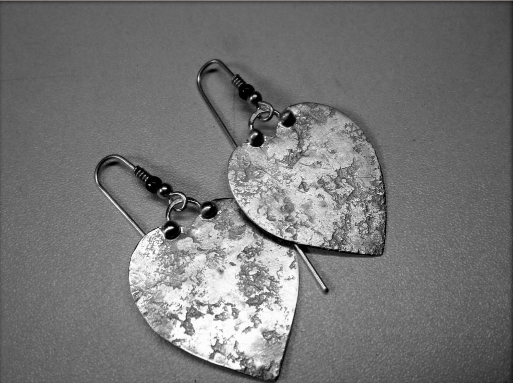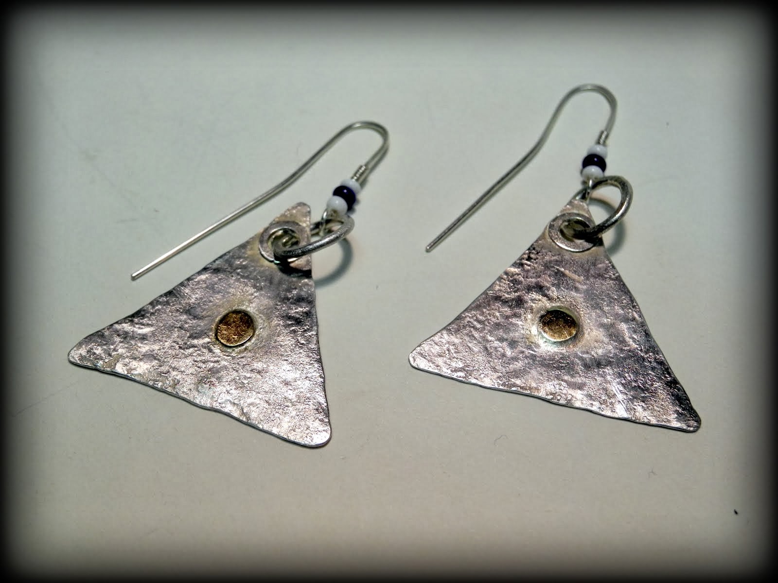 All the ear wires are handmade, usually simple hooks that I forge and hammer. I prefer them to have a bit of weight and presence rather than disappearing into the background.